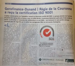 « L’acteur clé du secteur de l’immobilier romand est désormais certifié ISO 9001. Les groupe pionnier de l’activité de gestion de copropriété en Suisse a reçu, en juillet dernier, la précieuse distinction après plus d’une année de travail. La direction et l’ensemble des collaborateurs se sont hâtés – non lentement et sans perdre courage -, remettant […]
