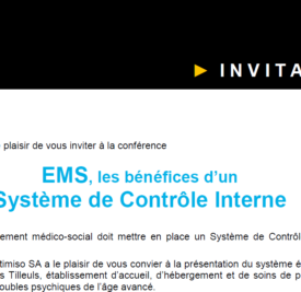 Votre établissement médico-social doit mettre en place un Système de Contrôle Interne (SCI) ? La société Optimiso SA a le plaisir de vous convier à la présentation du système établi à La Résidence Les Tilleuls, établissement d’accueil, d’hébergement et de soins de personnes souffrant de troubles psychiques de l’âge avancé. Venez découvrir le cas […]